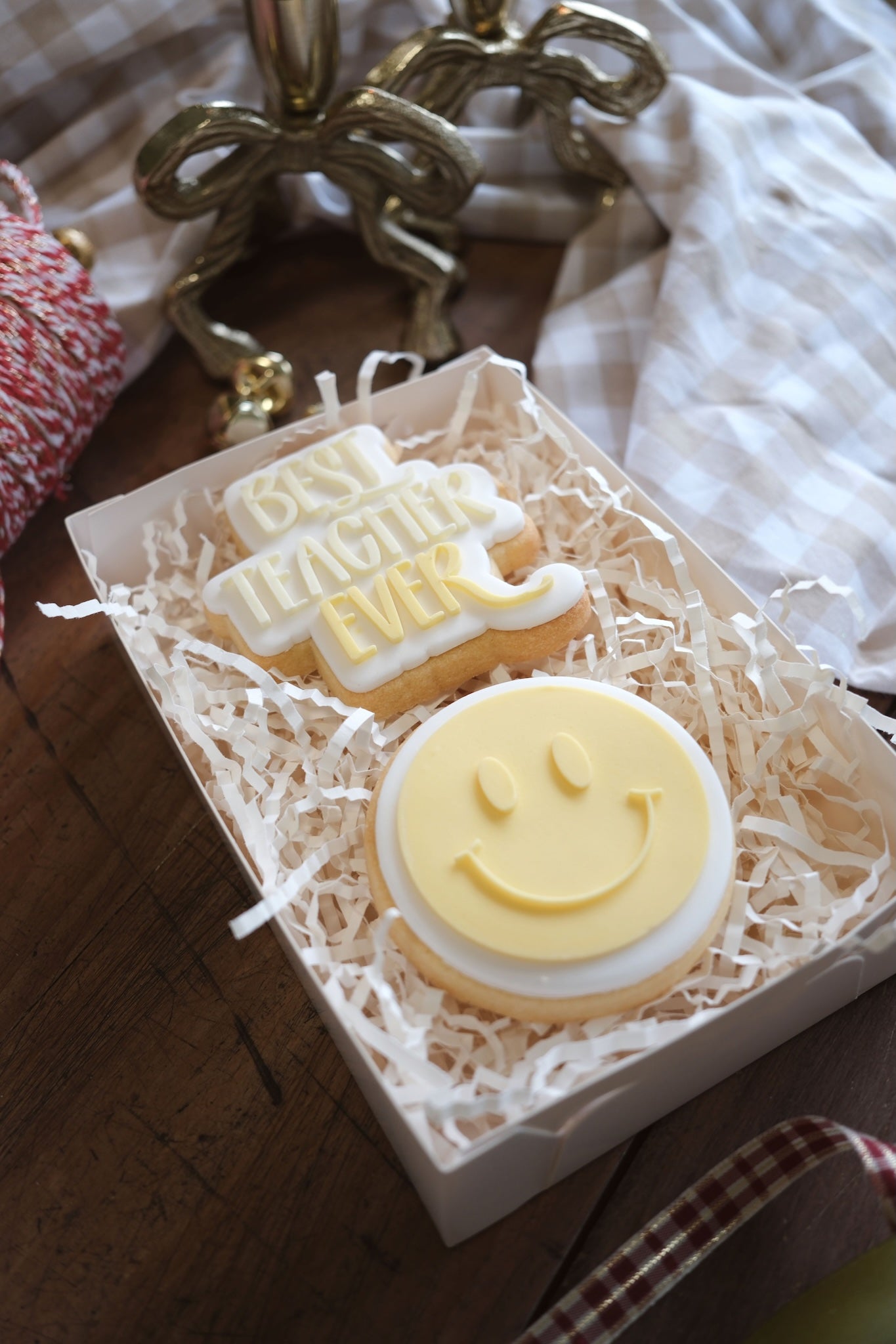 Say thank you to a teacher with a sweet treat for them to enjoy! All cookies are heat sealed and gift boxes wrapped with love and ribbon (colours may vary).